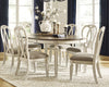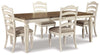 Bon appétit. This dining room set has all the right ingredients for a French country-inspired feast for the eyes. Drop-in leaf allows you to transform the intimate square dining table into a gracious extension table that comfortably seats eight. Antiqued two-tone aesthetic pairs chipped white with a distressed wood finished top for a double serving of charm. With its rounded ladderback styling and plushly cushioned seat, this dining room chair is sure to entice you to linger a little longer.